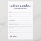 These simple, navy blue and white, modern, minimal, handwritten script Advice & Wishes sheets are perfect to have bridal shower, rehearsal dinner or wedding guests fill out for the happy couple. People will love having the prompts - they make it so easy to leave loving words of advice and well wishes. They will be treasured for years to come.
