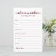 These simple, burgundy and white, modern, minimal, handwritten script Advice & Wishes sheets are perfect to have bridal shower, rehearsal dinner or wedding guests fill out for the happy couple. People will love having the prompts - they make it so easy to leave loving words of advice and well wishes. They will be treasured for years to come.