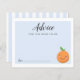 Cute little cutie theme baby shower advice cards with hand illustrated art of an orange fruit with a smile. This blue design is perfect for a boy shower.