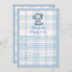 Adorable grey and blue baby bear for a boy's baby shower Advice For Mummy baby shower game. Plaid blanket with blue stitched edge border for background. Templates provided on back.