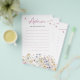 Invite guests to share heartfelt advice and wisdom for the parents-to-be with this charming wildflower-themed card! Adorned with delicate watercolor blooms and soft pastel accents, it’s the perfect addition to a memorable baby shower. A beautiful keepsake for the new parents to cherish forever!