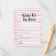 Pink and white Bridal Advice game for the bride to be. Hand drawn white horizontal stripes.