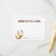 Gather advice for the happy couple with these sweet cards. Place a stack at the entrance to an engagement party or wedding, leave one at each place setting, or pass them around. Design features two golden watercolor horseshoes and matches our Lucky in Love Horseshoe wedding invitation set. Coordinating accessories available in our shop!