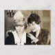 Humourous image of older woman with homely grin talking to a dazed younger woman. Image in black and white from the talkies.