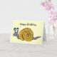Hilarious cartoon snail birthday card says happy birthday on the outside and inside is another snail with a slime trail behind and says Rush out and Celebrate. Cute and fun.