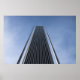 Take home a Chicago icon! The towering skyscraper stretches up against a backdrop of a clear blue sky, with two tall flagpoles flanking it. The perspective offers a dramatic view of the building's vertical lines and symmetry.