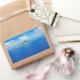 Rectangular photo sticker of an aerial view over tropical Bora Bora island with turquoise lagoon in the Pacific Ocean near Tahiti in French Polynesia.