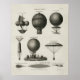 Technical illustration shows early balloon designs: "Lana's aeronautic machine," "Montgolfiers' balloon," "Blanchard's balloon," "Garnerin ascending [and] descending" in his parachute, the "Charles & Roberts' balloon" being inflated, the "form of the wings employed by Lunardi," and the "form of the wings employed by Blanchard." Aeronautics, French Poster