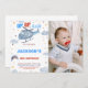 Aeroplane Birthday Invitations Blue Grey with photo