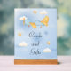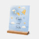 Blue Gold Aeroplane Clouds Stars,Cute Baby Shower Sign for baby boy.