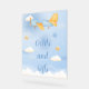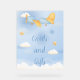 Blue Gold Aeroplane Clouds Stars,Cute Baby Shower Sign.