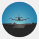 Aeroplane Landing Silhouette at Night Classic Round Sticker