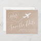 Aeroplane Monogram Kraft Destination Wedding Date Announcement Postcard