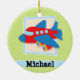 Aeroplane on Lime Green & White Stripes Ceramic Tree Decoration