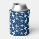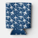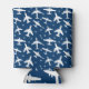 Cool can cooler printed with a navy blue and white aviation themed pattern.