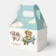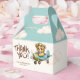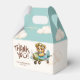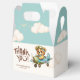 Adorned with a delightful teddy bear pilot flying through whimsical clouds in an adorable aeroplane, all set against a soft watercolor backdrop, this favour box adds a touch of sweetness and imagination to your event. Perfect for holding treats or small gifts for your guests, these favour boxes are sure to delight and leave a lasting impression on your baby shower or special occasion.