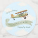 Vintage style biplane aeroplane baby shower design is a great gender neutral theme for a baby on the way! The green and yellow colour scheme and blue sky are cute fun and sweet!