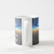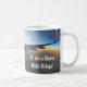 Photograph of an aeroplane wing against setting sun with text (customisable) , "O, for a horse with wings!" by William Shakespeare. Design on both sides of mug. Mug style, size, colour are customisable.