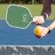 Create your own personalised pickleball paddle featuring elegant monogram initials and aesthetic green chequered pattern background
