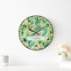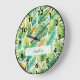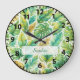Custom Name Tropical Green Leaves Large Wall Clock