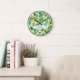 Bring a fresh, natural vibe to your room with this large tropical leaves wall clock. The design features a seamless pattern of lush green Monstera and palm leaves, creating a modern "Biophilic" aesthetic that works perfectly in a living room, bedroom, or office. The deep green tones and clean botanical lines give it a calm, garden-inspired feel that brightens up any wall.