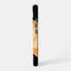 A phone case featuring a cartoon-style illustration of an orange cat with big, expressive eyes against a black background. The vibrant colours and cute design can attract attention and make the phone case visually appealing. A cat-themed design can resonate well with animal lovers and provide a fun way for individuals to express their personality. Beyond aesthetics, phone cases serve a practical purpose by protecting devices from scratches, drops, and general wear and tear. The playful design can complement various outfits and personal styles, making it a versatile accessory. This type of design makes for a thoughtful gift for friends or family members who love cats or unique art.