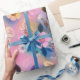 Aesthetic Pink Pattern With Yellow Flowers Wrapping Paper