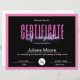 Introducing our Certificate of Completion Template—a versatile and editable design perfect for courses like Lash, Nail, Wig Making, Makeup, and Hair classes. With striking neon lettering atop a sleek black and pink background, this template allows you to easily add your logo and course name for a personalised touch. Celebrate your students' achievements in style