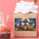 A playful Halloween scene featuring a mischievous little pup peeking out of a carved pumpkin, surrounded by spooky-fun fall vibes. With cheeky charm and autumn colours, it’s the perfect touch of humour for the season.