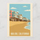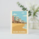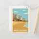 Send a piece of the Golden State with this elegant Malibu travel postcard. Featuring the iconic stilt houses of the California coast, this illustration blends a minimalist retro style with a soothing sun-drenched palette of ochre, turquoise, and coral.