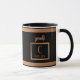 Affirmation Saying " I Am the Boss Lady" Mug in Copper faux metallic Typography along with your Monogram and Name .All on a background of classic black, the faux copper artistic rendering gives dimension to the affirmation "I Am the Boss Lady " with a companion affirmation on the other side "Yeah!". And to seal the thought effectively, a copper texture frame for your monogram initial and name. Use the personalize option to insert your own name and initial, even change the font if you like. Start each day with your coffee and this affirmation and soon you will feel the power of your own mind. Make this new year your year- all they way. You can do this. This beautiful empowering mug is part of the Affirmation Mug Collection in our store, with each one thoughtfully designed by our featured artist, Nancy Lambert.