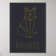 Motivate yourself daily with this inspirational poster of a yellow origami shape of a fox with a positive word saying "believe". Decorate your room with this awesome wall art or present it as a gift for your best friend.