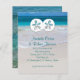 Sand dollar, beach wedding invitations printed on affordable, flyer paper. Use the templates to create a fun, casual wedding invitation with two big sand dollars at the top. Background images on both sides are water and beach sand. Remove all the text if you’d prefer to print your own, or hand write a personal invite.