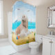 A afghan hound dog sitting on beach is a perfect gift idea for someone who love this dog breed.