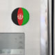 The flag of Afghanistan has been carefully fitted to the circular form of this magnet. A decorative way to promote Afghan culture.