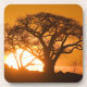 Africa, Botswana, Setting sun silhouettes Baobab Coaster