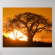 Africa, Botswana, Setting sun silhouettes Baobab Poster