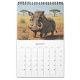 Calendar featuring wildlife in Africa with iconic African Animals. On the front page you can see majestic Gorilla together with Zebras, African Lion and African Elephants at waterhole. Each of the 12 pages inside the calendar features a different animal depicted in doted photo art style. Guide to animals is on the back page. Other animals include Rhinoceros, Leopard, Giraffe, Hippopotamus, Pangolin, Warthog, Buffalo, Wildebeest. Select year, language and holidays configuration before adding to cart.