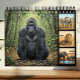 Calendar featuring wildlife in Africa with iconic African Animals. On the front page you can see majestic Gorilla together with Zebras, African Lion and African Elephants at waterhole. Each of the 12 pages inside the calendar features a different animal depicted in doted photo art style. Guide to animals is on the back page. Other animals include Rhinoceros, Leopard, Giraffe, Hippopotamus, Pangolin, Warthog, Buffalo, Wildebeest. Select year, language and holidays configuration before adding to cart.