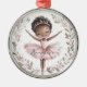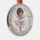 African American Ballet Dancer Metal Ornament. Pink floral Personalised script African American Ballerina Ornament with floral wreath botanicals.