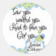 After a long delay, I contacted Zazzle and they immediately declared the stickers were lost by the post. Another printout was created and expressed post at no cost to me. They came within a week in time for our first harvest. The stickers are exactly as ordered. They fit perfectly on my small honey jars. My daughter, Philippa is over the moon to see her name on the honey jars.