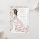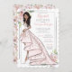 Pink and grey floral bridal shower invitation features customisable blonde, brown, auburn hair and skin tones in a gorgeous glitter wedding gown.