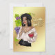 Red and gold bachelorette party invitation featuring an African American woman fashionista drinking wine and smoking.