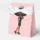 Adorable African American princess diva party favour boxes. You can choose the background colour, add or delete text, and change the ribbon colour on this fun and cute African American woman's party favour box. The text underneath the flap reads, "Thank you, Dahhhhhling!" and can be removed or changed.
