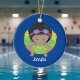 African American Girl Swim Team Monogram Blue Ceramic Ornament