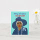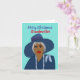 This classy card features an African American lady with a blue hat and dress. This Christmas card is perfect for sending to a grandmother who has a special place in your heart.