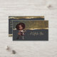 Elegant gold frame, confetti and African American hairdresser on black background. Ideal gift certificate for beauty salons, spas, cosmetologists, estheticians, dance studios, boutiques, designers, hair and fashion stylists or any other image aware or retail professionals.