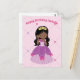 These adorable pink princess happy birthday postcard features a drawing of a pretty black little girl wearing a beautiful pink ball gown. Personalise this cute children's birthday postcard with your African American child's name between the fun heart pattern.