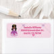 These adorable pink princess birthday party return address labels feature a drawing of a pretty black girl wearing a beautiful pink ball gown. Personalise this cute children's birthday mailing accessory with your African American child's name underneath the fun heart pattern.