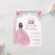 Host a magical and inclusive celebration with this African American princess tea party invitation. This design features a stunning watercolor princess dress with a shimmering faux sparkle effect and a princess with natural hair. Adorned with elegant pink roses and a classy teacup, it is the perfect choice for a fairytale royal birthday or a whimsical garden party.